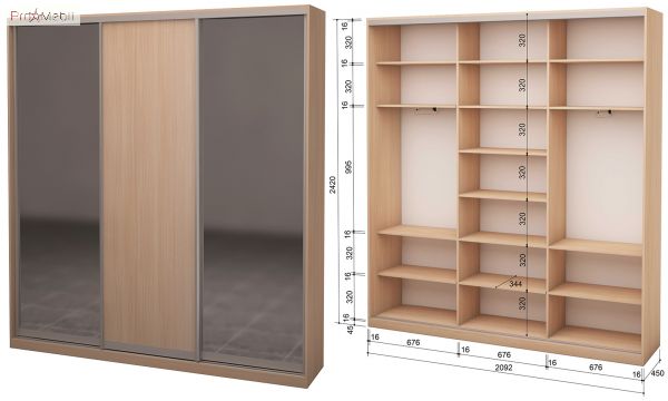 Купить шкаф-купе Roko 3.464.242.45-2 ДСП 2 зеркала 209.2 недорого в Украине, Киеве, Днепре
