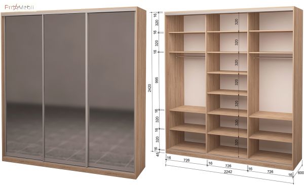 Опис Шафа-купе Roko 3.464.242.60-2 3 дзеркала 224.2