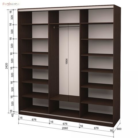 Шафа-купе Roko - вибір якості від української фабрики серед шаф, яка гармонійно впишеться в Ваш інтер'єр і створить затишок завдяки великій гамі кольорів, різних розмірів і міцних матеріалів. Шафа-купе складається з трьох розсувних дзеркальних дверей. Усередині справа і зліва - по шість полиць, а по центру одна штанга для вішалок і дві полиці завдяки чому Ви можете розмістити всі необхідні речі. Шафа-купе Roko представлена в широкому діапазоні відтінків: дуб венге, дуб Сонома, дуб молочний, німфея альба, сірий графіт, що дозволяє меблям легко вписатися в різні дизайни, наповнивши квартиру шармом і натхненням.