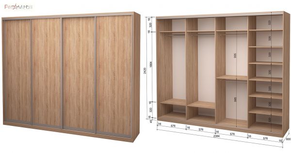 Шафа-купе Roko - це надійна модель серед шаф, яка гармонійно впишеться в Ваш інтер'єр і створить затишок завдяки великій гамі кольорів, різних розмірів і міцних матеріалів. Шафа-купе складається з чотирьох розсувних дверей з ДСП. Усередині справа розташовано шість полиць, далі відділення в якому дві штанги для вішалок і дві полиці і зліва в кожному відділенні - по одній штанзі і дві полиці завдяки чому Ви можете розмістити всі необхідні речі. Шафа-купе Roko представлена в широкому діапазоні відтінків: дуб венге, дуб Сонома, дуб молочний, німфея альба, сірий графіт, що дозволяє меблям легко вписатися в різні дизайни, наповнивши квартиру шармом і натхненням.