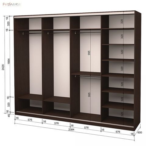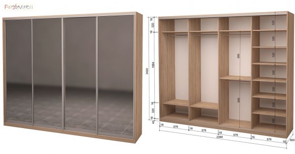 Шафа-купе Roko - це надійна модель серед шаф, яка гармонійно впишеться в Ваш інтер'єр і створить затишок завдяки великій гамі кольорів, різних розмірів і міцних матеріалів. Шафа-купе складається з чотирьох розсувних дзеркальних дверей з. Усередині справа розташовано шість полиць, далі відділення в якому дві штанги для вішалок і дві полиці і зліва в кожному відділенні - по одній штанзі і дві полиці завдяки чому Ви можете розмістити всі необхідні речі. Шафа-купе Roko представлена в широкому діапазоні відтінків: дуб венге, дуб Сонома, дуб молочний, німфея альба, сірий графіт, що дозволяє меблям легко вписатися в різні дизайни, наповнивши квартиру шармом і натхненням.