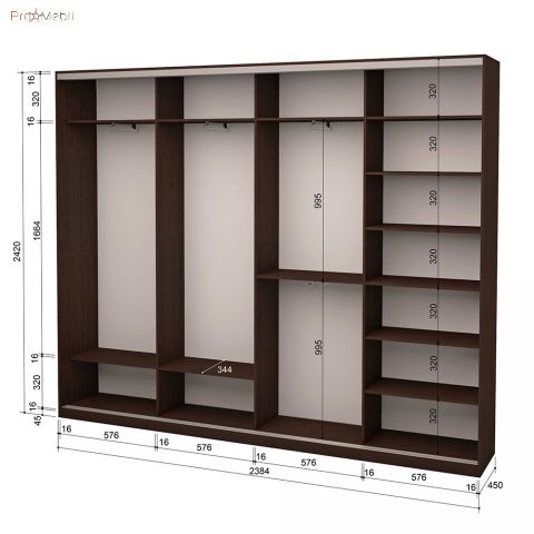 Шафа-купе Roko - це надійна модель серед шаф, яка гармонійно впишеться в Ваш інтер'єр і створить затишок завдяки великій гамі кольорів, різних розмірів і міцних матеріалів. Шафа-купе складається з чотирьох розсувних дзеркальних дверей. Усередині справа розташовано шість полиць, далі відділення, в яких по одному мікроліфту для вішалок і дві полиці, завдяки чому Ви можете розмістити всі необхідні речі. Шафа-купе Roko представлена в широкому діапазоні відтінків: дуб венге, дуб Сонома, дуб молочний, німфея альба, сірий графіт, що дозволяє меблям легко вписатися в різні дизайни, наповнивши квартиру шармом і натхненням.