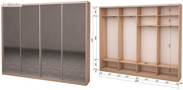 Шафа-купе Roko - це надійна модель серед шаф, яка гармонійно впишеться в Ваш інтер'єр і створить затишок завдяки великій гамі кольорів, різних розмірів і міцних матеріалів. Шафа-купе складається з чотирьох розсувних дзеркальних дверей. Усередині справа в двох відділеннях розташоване по одному мікроліфту і три полиці, а зліва відділення, в якому по одному мікроліфту для вішалок і дві полиці, завдяки чому Ви можете розмістити всі необхідні речі. Шафа-купе Roko представлена в широкому діапазоні відтінків: дуб венге, дуб Сонома, дуб молочний, німфея альба, сірий графіт, що дозволяє меблям легко вписатися в різні дизайни, наповнивши квартиру шармом і натхненням.