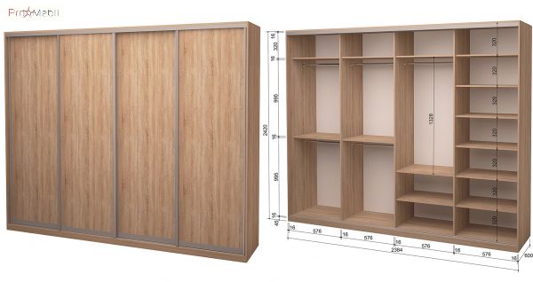 Шафа-купе Roko - це надійна модель серед шаф, яка гармонійно впишеться в Ваш інтер'єр і створить затишок завдяки великій гамі кольорів, різних розмірів і міцних матеріалів. Шафа-купе складається з чотирьох розсувних дверей з ДСП. Усередині справа розташовано шість полиць, далі відділення в якому одна штанга для вішалок і три полиці і зліва в кожному відділенні - по дві штанги і дві полиці завдяки чому Ви можете розмістити всі необхідні речі. Шафа-купе Roko представлена в широкому діапазоні відтінків: дуб венге, дуб Сонома, дуб молочний, німфея альба, сірий графіт, що дозволяє меблям легко вписатися в різні дизайни, наповнивши квартиру шармом і натхненням.