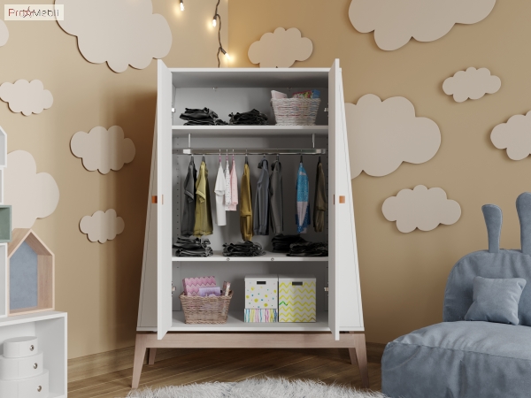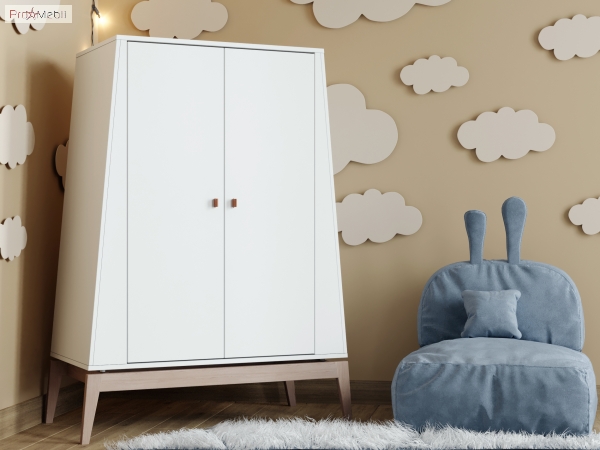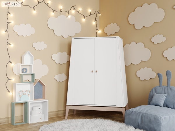 Незвичайна та зручна дводверна шафа Luna 140 Leander - необхідний предмет меблів в дитячій кімнаті. Він не тільки гарно виглядає в інтер'єрі, але і виконує важливу функцію, забезпечує збереження і порядок гардеробу. В своїй конструкції шафа має двоє дверцят, внутрішній простір розділено двома полицями з ДСП, які регулюються по висоті. Також в комплекті ви отримуєте одну рейку для навішування речей. Корпус і фасадні частини виготовлені з МДФ товщиною 16 мм і покриті зносостійким захисним лаком, зовні пофарбовані матовою емаллю білого кольору. Меблі Luna Leander привертають увагу унікальним легким дизайном; строгими лініями і конусною формою; коричневими ручками з натуральної шкіри; високими ніжками з лакованого масиву бука; фірмовими комплектуючими. Меблі Luna Leander відрізняються чудовим зовнішнім виглядом, ретельно продуманими деталями, практичністю, універсальністю та безпекою, створюючи комфортний інтер'єр, як для хлопчика, так і для дівчинки.