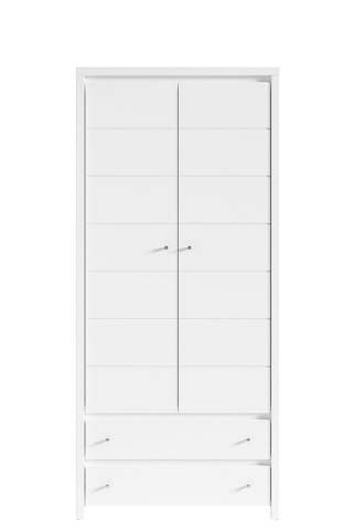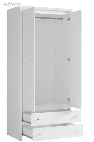 Білосніжна шафа платтяна SZF2D2S Крістіна ВМК (БРВ) з вишуканим та елегантним скандинавським стилем для облаштування інтер'єру вітальні, спальні, дитячої, кабінету та передпокою відповідно до ваших уподобань. Шафа містить дві висувні шухляди та одне закрите відділення, всередині розташована штанга для вішалок. Шафа платтяна привертає увагу поєднанням простого та оригінального стилю; кольоровим поєднанням корпусу німфея альба з білими глянцевими фасадами; правильними геометричними формами з оригінальним горизонтальним фрезеруванням на фасадах; акуратними металевими точковими ручками, сріблястого кольору; фірмовими комплектуючими: роликовими напрямними та петлями Hettich, що забезпечують максимальний комфорт у використанні. Меблі, що привертають до себе увагу, Крістіна ВМК (БРВ) - ця пропозиція для всіх, хто шукає неповторний інтер'єр своєї мрії.