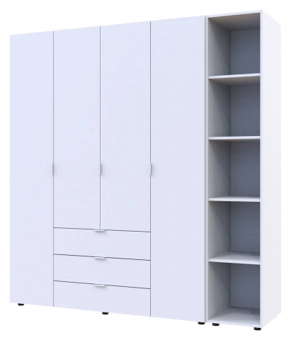 Шафа для одягу Гелар 1 етажерка / 4 ДСП Doros - це ідеальний вибір для збереження Вашого гардеробу. Внутрішнє наповнення представлене відділенням зі штангою для підвішування одягу, двома секціями з закритими місткими поличками, функціональними шухлядами та одним відділенням з відкритими полицями для зручного зберігання всіх необхідних речей та аксесуарів. Шафа виготовлена з екологічно чистого ламінованого ДСП (Kronospan) товщиною 16 мм, торцеві поверхні облицьовані кромкою ПВХ товщиною 0,5 мм, з надійною меблевою фурнітурою - петлями та роликовими направляючими, які прослужать довго, а ергономічна накладна пластикова ручка полегшить експлуатацію виробу. Шафа для одягу Gelar Doros допоможе ергономічно та функціонально організувати простір Вашого приміщення, оформивши його в сучасному стилі.