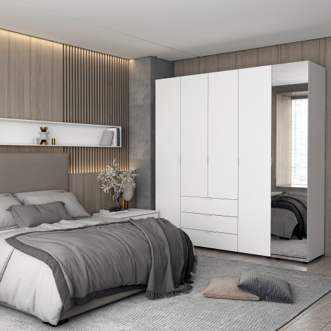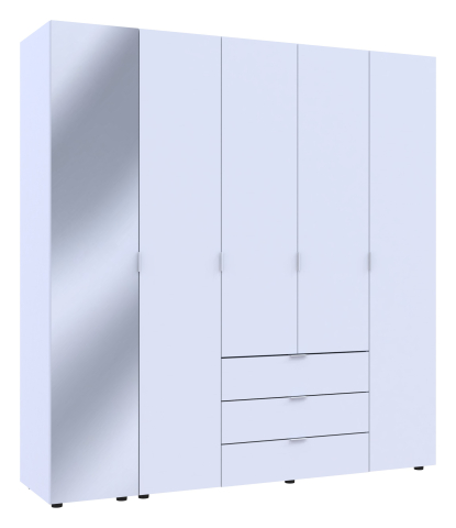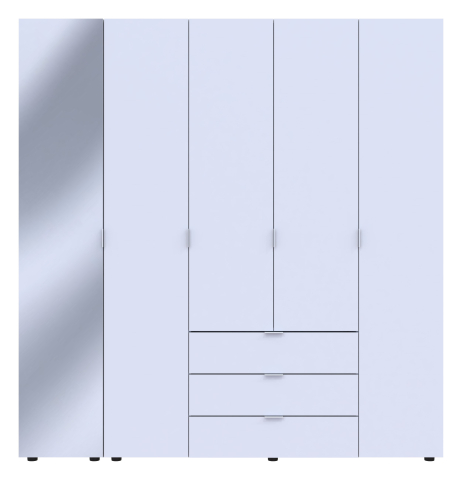 Платтяна шафа Гелар 1 дзеркало / 4 ДСП Doros ідеальна для тих, хто цінує порядок і зручність. Завдяки продуманій конструкції та якісним матеріалам, вона стане незамінним елементом вашого інтер'єру, забезпечуючи зручне зберігання одягу та аксесуарів. Шафа містить п’ять відділень: відділення з трьома висувними шухлядами для зберігання білизни, аксесуарів і дрібних речей, відділення зі штангою для вішалок - ідеальне для верхнього одягу, суконь, костюмів та інших речей, які потребують вертикального зберігання, а також три відділення з полицями - придатне для зберігання взуття, сумок, складних речей та інших предметів. Дзеркало на фасаді шафи дасть змогу швидко оцінити Ваш зовнішній вигляд, не виходячи зі спальні або гардеробної. Платтяна шафа Гелар - прекрасний вибір для тих, хто цінує організованість і хоче, щоб всі речі знаходилися на своїх місцях.