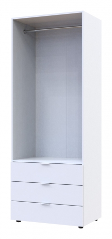 шафа містить два відділення: відділення з трьома висувними шухлядами та відділення зі штангою для вішалок |