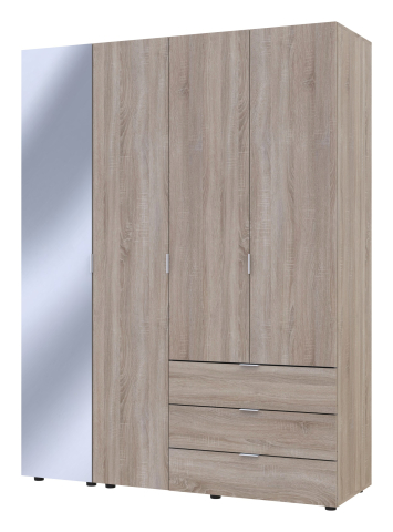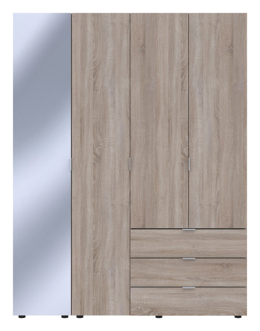 Платтяна шафа Гелар 1 дзеркало / 3 ДСП Doros ідеальна для тих, хто цінує порядок і зручність. Завдяки продуманій конструкції та якісним матеріалам, вона стане незамінним елементом вашого інтер'єру, забезпечуючи зручне зберігання одягу та аксесуарів. Шафа містить чотири відділення: відділення з трьома висувними шухлядами для зберігання білизни, аксесуарів і дрібних речей, відділення зі штангою для вішалок - ідеальне для верхнього одягу, суконь, костюмів та інших речей, які потребують вертикального зберігання, а також два відділення з полицями - придатне для зберігання взуття, сумок, складних речей та інших предметів. Дзеркало на фасаді шафи дасть змогу швидко оцінити Ваш зовнішній вигляд, не виходячи зі спальні або гардеробної. Платтяна шафа Гелар - прекрасний вибір для тих, хто цінує організованість і хоче, щоб всі речі знаходилися на своїх місцях.