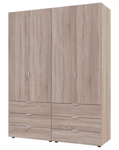 Шафа для одягу Гелар 2+2 ДСП Doros - це ідеальний вибір для збереження Вашого гардеробу. Внутрішнє наповнення представлене двома відділеннями зі штангою для підвішування одягу та функціональними шухлядами для зручного зберігання всіх необхідних речей та аксесуарів. Шафа виготовлена з екологічно чистого ламінованого ДСП (Kronospan) товщиною 16 мм, торцеві поверхні облицьовані кромкою ПВХ товщиною 0,5 мм, з надійною меблевою фурнітурою - петлями та роликовими направляючими, які прослужать довго, а ергономічна накладна пластикова ручка полегшить експлуатацію виробу. Шафа для одягу Gelar Doros допоможе ергономічно та функціонально організувати простір Вашого приміщення, оформивши його в сучасному стилі.