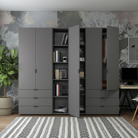 Опис Шафа платтяна Гелар графіт 1 етажерка / 2+3 ДСП Doros