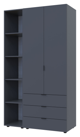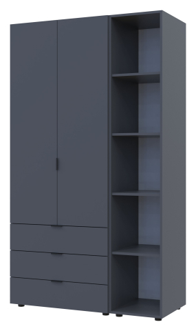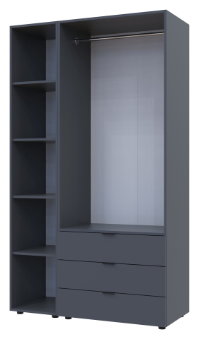 шафа містить три відділення: відділення з трьома висувними шухлядами, відділення зі штангою для вішалок та відділення з відритими полицями |