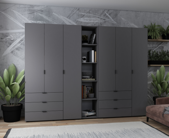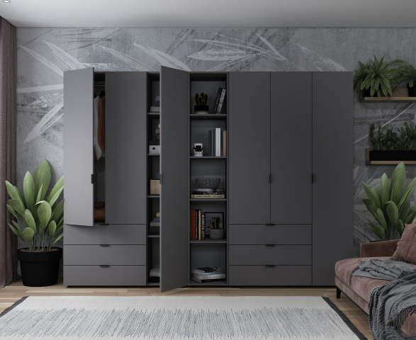 Характеристики Шафа платтяна Гелар графіт 1 етажерка / 3+3 ДСП Doros