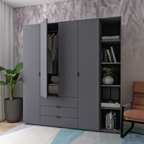 Опис Шафа платтяна Гелар графіт 1 етажерка / 4 ДСП Doros