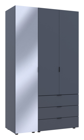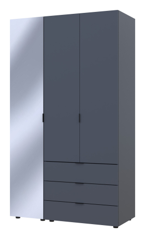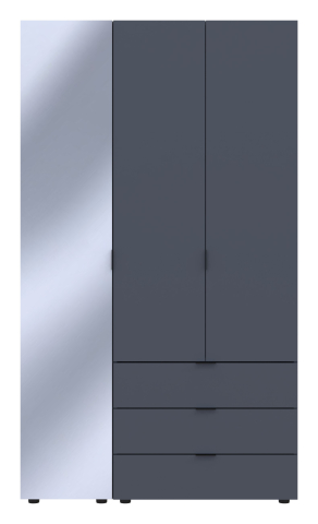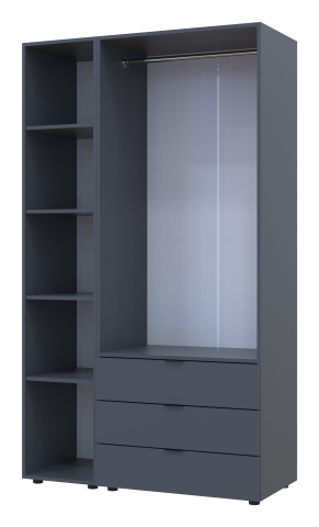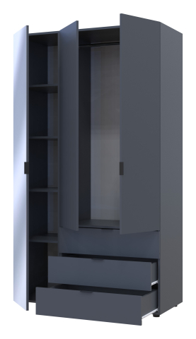 шафа містить три відділення: відділення з трьома висувними шухлядами, відділення зі штангою для вішалок та відділення з полицями |