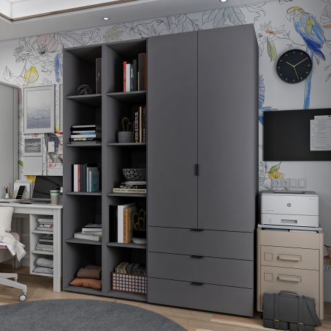 Опис Шафа платтяна Гелар графіт 2 етажерки / 2 ДСП Doros