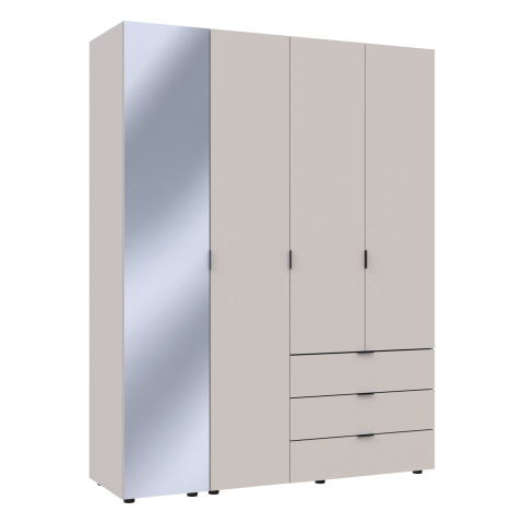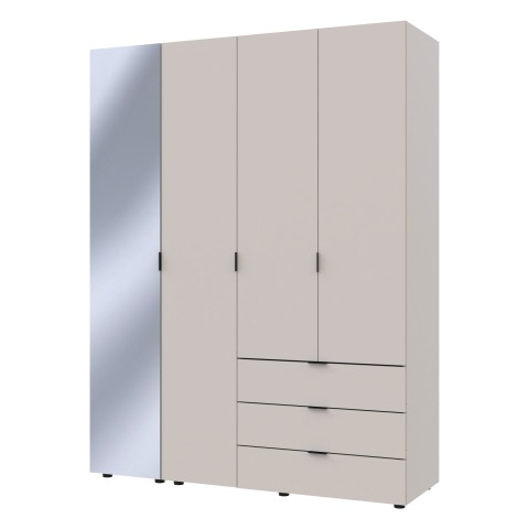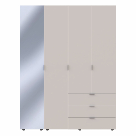 Платтяна шафа Гелар 1 дзеркало / 3 ДСП Doros ідеальна для тих, хто цінує порядок і зручність. Завдяки продуманій конструкції та якісним матеріалам, вона стане незамінним елементом вашого інтер'єру, забезпечуючи зручне зберігання одягу та аксесуарів. Шафа містить чотири відділення: відділення з трьома висувними шухлядами для зберігання білизни, аксесуарів і дрібних речей, відділення зі штангою для вішалок - ідеальне для верхнього одягу, суконь, костюмів та інших речей, які потребують вертикального зберігання, а також два відділення з полицями - придатне для зберігання взуття, сумок, складних речей та інших предметів. Дзеркало на фасаді шафи дасть змогу швидко оцінити Ваш зовнішній вигляд, не виходячи зі спальні або гардеробної. Платтяна шафа Гелар - прекрасний вибір для тих, хто цінує організованість і хоче, щоб всі речі знаходилися на своїх місцях.