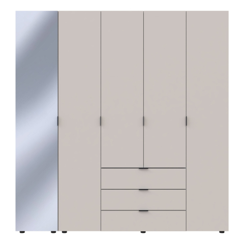 Платтяна шафа Гелар 1 дзеркало / 4 ДСП Doros ідеальна для тих, хто цінує порядок і зручність. Завдяки продуманій конструкції та якісним матеріалам, вона стане незамінним елементом вашого інтер'єру, забезпечуючи зручне зберігання одягу та аксесуарів. Шафа містить п’ять відділень: відділення з трьома висувними шухлядами для зберігання білизни, аксесуарів і дрібних речей, відділення зі штангою для вішалок - ідеальне для верхнього одягу, суконь, костюмів та інших речей, які потребують вертикального зберігання, а також три відділення з полицями - придатне для зберігання взуття, сумок, складних речей та інших предметів. Дзеркало на фасаді шафи дасть змогу швидко оцінити Ваш зовнішній вигляд, не виходячи зі спальні або гардеробної. Платтяна шафа Гелар - прекрасний вибір для тих, хто цінує організованість і хоче, щоб всі речі знаходилися на своїх місцях.