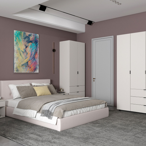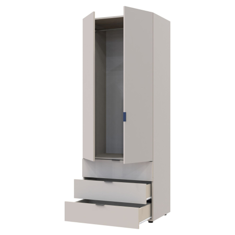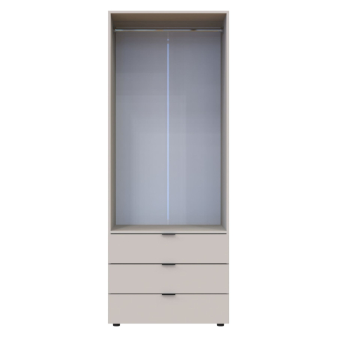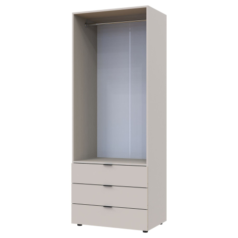 шафа містить два відділення: відділення з трьома висувними шухлядами та відділення зі штангою для вішалок |