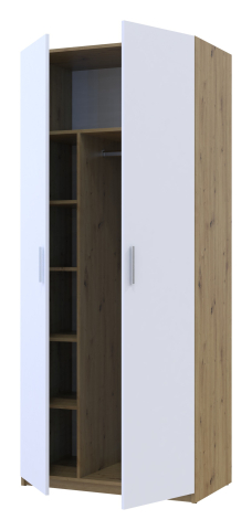 Сучасна платтяна шафа Кен Doros з двома дверцятами та двома відділеннями для одягу- відділення з полицями та відділення зі штангою для вішалок, а також з антресольною полицею, яка знаходиться під верхом модуля, призначається для розміщення предметів, що рідко використовуються, сезонного одягу, ковдр тощо. За допомогою шафи Кен Doros Ви забезпечите порядок та затишок у вашому приміщенні.