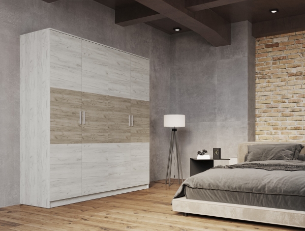 Сучасна платтяна шафа Моніка Doros з чотирма дверцятами і двома відділеннями з горизонтально розташованими штангами для навішування одягу: суконь, предметів верхнього гардеробу, костюмів, сорочок, а також з антресольними полицями, які знаходяться під верхом модуля, призначаються для розміщення предметів, що рідко використовуються, сезонного одягу, ковдр тощо. Шафа Моніка Doros відрізняється привабливим дизайном, надійністю та практичністю конструкції та тривалим терміном служби.
