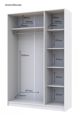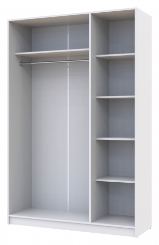шафа містить два відділення: відділення з полицями та відділення зі штангою для вішалок, зверху полиця антресоль |