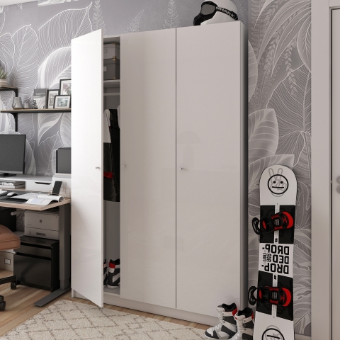 Сучасна платтяна шафа Promo Doros з трьома дверцятами та двома відділеннями для одягу: відділення з полицями та відділення зі штангою для вішалок, а також з антресольною полицею для розміщення предметів, що рідко використовуються, сезонного одягу, ковдр тощо. За допомогою шафи Promo Doros Ви забезпечите порядок та затишок у вашому приміщенні.