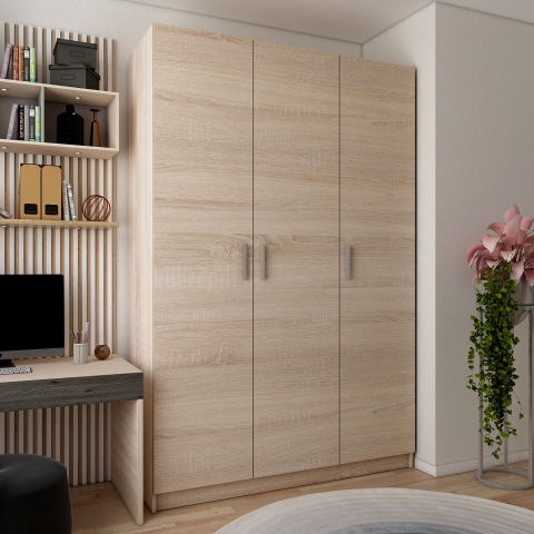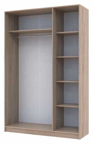 Сучасна платтяна шафа Promo Doros з трьома дверцятами та двома відділеннями для одягу: відділення з полицями та відділення зі штангою для вішалок, а також з антресольною полицею для розміщення предметів, що рідко використовуються, сезонного одягу, ковдр тощо. За допомогою шафи Promo Doros Ви забезпечите порядок та затишок у вашому приміщенні.