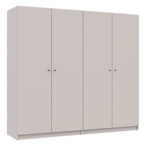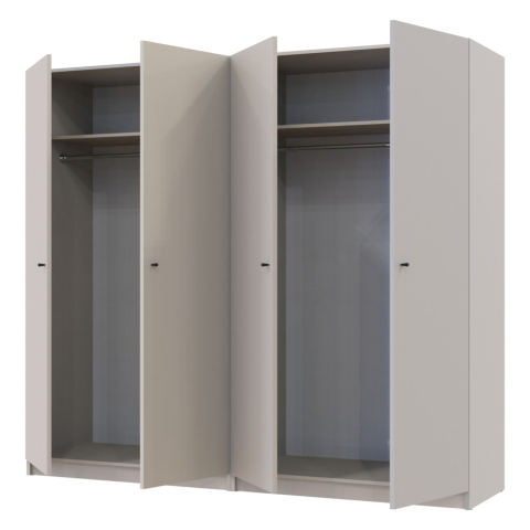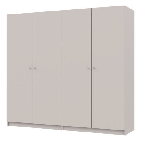 Сучасна платтяна шафа Promo Doros з чотирма дверцятами та двома відділеннями з горизонтально розташованими штангами для навішування одягу: суконь, предметів верхнього гардеробу, костюмів, сорочок, а також з антресольними полицями, які знаходиться під верхом модуля, призначається для розміщення предметів, що рідко використовуються, сезонного одягу, ковдр тощо. За допомогою шафи Promo Doros Ви забезпечите порядок та затишок у вашому приміщенні.