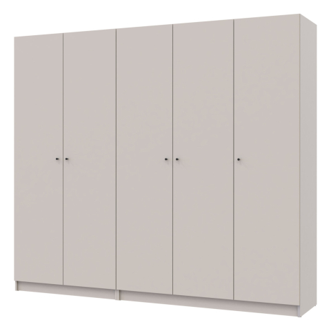Сучасна платтяна шафа Promo Doros з п'ятьма дверцятами та трьома відділеннями: відділення з полицями та два відділення зі штангою для вішалок та з антресольними полицями. За допомогою шафи Promo Doros Ви забезпечите порядок та затишок у вашому приміщенні.