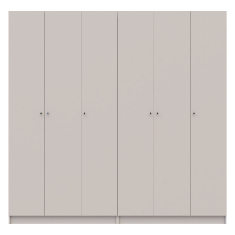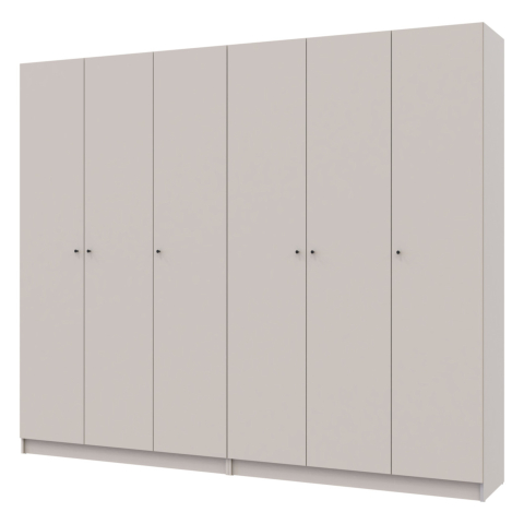 Сучасна платтяна шафа Promo Doros з шістьма дверцятами та чотирма відділеннями: два відділення з полицями та два відділення зі штангою для вішалок, зверху полиці антресоль. За допомогою шафи Promo Doros Ви забезпечите порядок та затишок у вашому приміщенні.