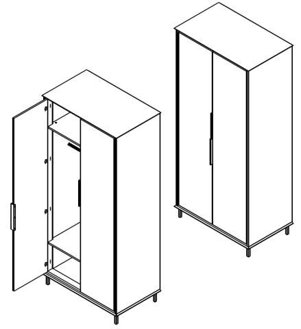 шафа містить одне закрите відділення, де за двома розпашними дверцятами розташовані полиці та штанга для вішалок |