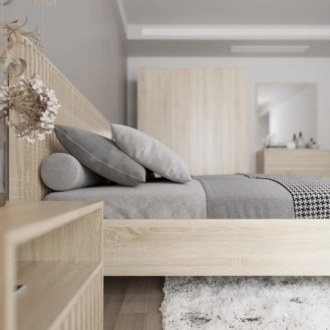 Шафа платтяна SZF3D2S Брус Gerbor являє собою ідеальне поєднання сучасного дизайну і скандинавського мінімалізму, що прекрасно підходить для оформлення спальні. Шафа обладнана двома місткими висувними шухлядами, що ідеально підходять для зберігання білизни або аксесуарів, зліва за елегантними подвійними дверцятами ховаються зручна полиця та штанга для одягу, праворуч за окремими дверцятами розташовано чотири просторі полиці, що ідеально підходять для акуратного зберігання одягу або декоративних коробок. Її головною особливістю є гармонія сучасного та скандинавського стилю, чіткі лінії та трендове поєднання відтінків - теплого натурального дерева з чистими світлими тонами. Декоративні вертикальні рейкові вставки, гладкі фасади без ручок із системою Push Magnet, що забезпечує легке і плавне відкривання, та елегантні пластикові ніжки Schwin завершують вишуканий образ. Спальня Брус Gerbor - це втілення дизайну, що робить ваш інтер'єр стильним і комфортним, з простою, але насиченою атмосферою, яка тішитиме щодня.