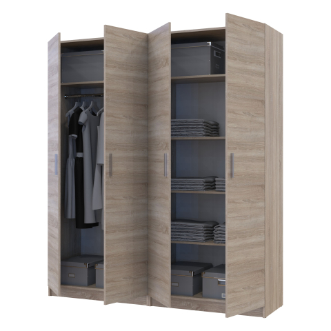 Сучасна шафа Promo Doros, в якій продумано кожен сантиметр простору, є ідеальним рішенням для організації вашого гардероба та інших особистих речей. Її два закритих відділення дають змогу впорядкувати все ваше приладдя, забезпечуючи легкий доступ до нього в будь-який час. У відділенні зі штангою для вішалок і полицею антресоллю, можна акуратно розвісити всі ваші улюблені вбрання. Сукні, костюми, сорочки та пальта знайдуть тут своє місце, залишаючись ідеально випрасуваними та готовими до носіння, а на полиці-антресолі чудово можна зберігати сезонний одяг, сумки та інші об'ємні предмети, як-от ковдри та подушки. У відділенні з низкою містких полиць, можна скласти светри, футболки, штани і джинси, організувавши їх таким чином, щоб все було на виду і легко доступно. За допомогою шафи Promo Doros Ви забезпечите порядок і затишок у вашому приміщенні.