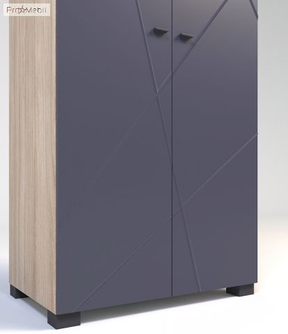 Дводверна шафа Х-02 X-Скаут Санті зі штангою для вішалок і полицями в вітальню, підліткову кімнату, передпокою або спальню. Містка і функціональна шафа для зберігання одягу та речей. Корпус виготовляється з високоякісного ламінованого ДСП товщиною 18 мм німецького концерну «Kronospan», фасади - МДФ c фрезеруванням товщиною 16 мм виробництва Італія. Торці деталей обклеюються кромкою ПВХ фірми Rehau. Меблі X-Скаут Santi випускаються в контрастному поєднанні «графітових матових» фасадів та корпусу «дуб кам’яний» з природною структурою деревини. Характерними особливостями меблів X-Skaut Santi є сучасний дизайн, прості геометричні форми модулів, елегантне фрезерування на фасадах, стильні довгасті пластикові ручки, фірмові комплектуючі німецького виробника Hettich. Меблі X-Скаут Санті це спосіб унікального аранжування інтер'єру дитячої кімнати, в якій Ви створите унікальний, наповнений легкістю лофт-інтер'єр.