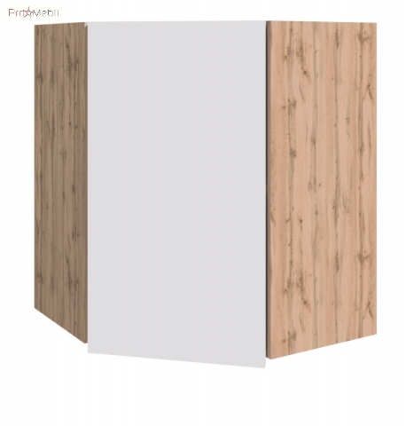 Ергономічна і універсальна підвісна шафа КВ60x60 Софт Сокме максимально оптимізує простір, раціонально допоможе використовувати важкодоступні ділянки кухонної зони і чудово підійде для зберігання предметів, доступ до яких повинен бути максимально швидким і зручним. Шафка верхня кутова містить одне закрите відділення з полицею всередині, оптимальний вибір для тих, кому потрібно багато місця для зберігання всього, що може знадобитися в процесі приготування. Для зручності дверцята можуть навішуватися як з правого боку, так і з лівого. Корпус і фасади виготовляються з якісного ДСП товщиною 16 мм в цікавому поєднанні кольорів: корпус виконаний в кольорі «дуб вотан» максимально наближеному до текстури натуральної деревини, фасади білого кольору підкреслюють текстуру деревини корпусу і додають кухні сучасного характеру. Торцеві поверхні всіх внутрішніх і зовнішніх елементів виробів облицьовані крайкою ABS товщиною 0,5 мм і крайкою ПВХ товщиною 0,5 мм, надаючи меблям завершений гарний і доглянутий вигляд. Колекція привертає увагу лаконічним і стриманим дизайном; мінімалістичним стилем; поєднанням білого з яскраво вираженою текстурою деревини; відсутністю ручок, їх роль виконує фрезерований торець фасаду під кутом 45 градусів; фірмовими комплектуючими: телескопічними напрямними і завісами без дотягу Hafele, які забезпечують максимальний комфорт у використанні. Кухня Софт Сокме - прикрасить сучасний інтер'єр, стане душею будинку, де збирається вся родина не тільки за сніданками або вечерями, але і для обговорення різних тем.