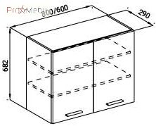 шкафчик верхний имеет две дверки, глухой фасад, внутренне пространство разделено двумя полочками из ДСП |