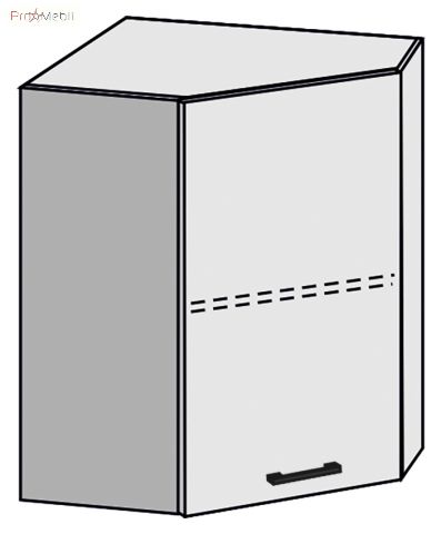 шафка верхня кутовий має одну глуху дверь, внутрішній простір за якою розділено полицею з ДСП |