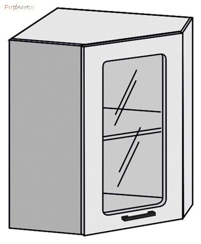 шафка верхня кутова має одну скляну дверь, внутрішній простір за якою розділено полицею з ДСП |