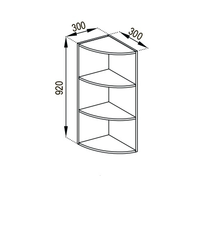 Кухонна шафка верхня В30КЗ (h-920) кухні Оля Світ Меблів — оснащена відкритими полицями, де можна розмістити різне кухонне приладдя. Корпус виготовляється з високоякісного ламінованого ДСП товщиною 16 мм у популярних колірних рішеннях корпусу: «білий», «дуб сонома», «графіт», «попелястий» та «дуб крафт золотий». Кухня Оля Світ Меблів стане справжнім місцем натхнення для приготування вишуканих страв щодня.