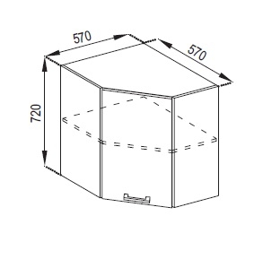 шафка верхня кутова містить одне закрите відділення з полицею всередині |