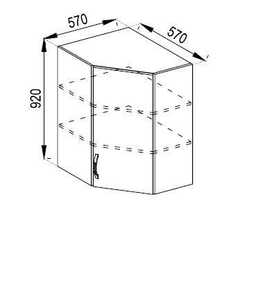 шафка верхня кутова містить одне закрите відділення з полицею всередині |
