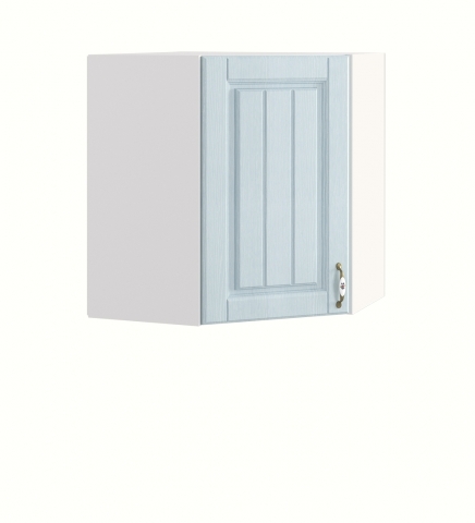 Компактна навісна шафа В57x57 (h-920) кухня Прованс Світ Меблів - елемент верхнього ярусу модульної кухні, який вигідно організує навіть невеликий простір і максимально оптимізує простір, раціонально допоможе використовувати важкодоступні ділянки кухонної зони і чудово підійде для зберігання предметів, доступ до яких повинен бути максимально швидким і зручним. Шафка верхня кутова містить одне закрите відділення з полицею всередині, оптимальний вибір для тих, кому потрібно багато місця для зберігання всього, що може знадобитися в процесі приготування. Корпус виготовляється з якісного ламінованого ДСП у популярних колірних рішеннях «білий», «дуб сонома» та «графіт» з текстурним фасадом із МДФ з фрезерованим малюнком у ніжному відтінку «блакитна лагуна». Кухня Прованс блакитна лагуна Світ Меблів досить цікаве та оригінальне рішення для сміливих та впевнених у собі людей, яка ніколи не здаватиметься нудною та буденною, адже блакитний колір привертає увагу та запам'ятовується.