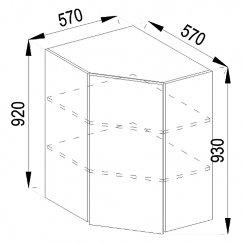 шафка верхня кутова містить одне закрите відділення з полицею всередині |