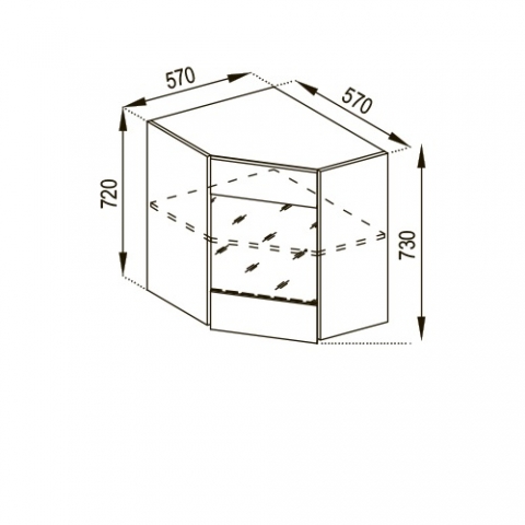 шафка верхня кутова містить одне закрите відділення з полицею всередині |