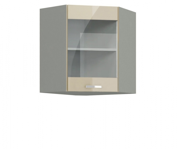 Кухонна шафка верхня В57x57Ск (h-720) кухні Марта глянець Світ Меблів — кутова оснащена одним закритим відділенням з поличкою всередині, де можна розмістити різне кухонне приладдя. Виготовляється з якісного ламінованого ДСП товщиною 16 мм у поєднанні на вибір - корпусу: «білий», «дуб сонома», «графіт», «попелястий» та «дуб золотий крафт» з глянцевими фасадами «артвуд світлий глянець», «білий глянець», «бетон темний глянець», «графіт глянець», «дакар глянець», «дуб артізан глянець», «дуб борас глянець», «дуб сонома глянець», «дуб трюфель глянець», «дуб енгрейн необроблений глянець», «індастріал глянець», «індиго глянець», «капучино глянець», «крем глянець», «лайм глянець», «лемонграс глянець», «попелястий глянець», «світлий беж глянець», «вугільний камінь глянець», «чорний глянець», «шовковий камінь глянець». Кухня Марта Світ Меблів – унікальний та універсальний кухонний гарнітур, який дозволить створити кухню своєї мрії.