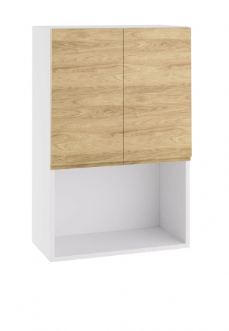 шафка верхня з двома дверима містить одне закрите відділення з полицею всередині та відкриту нішу під мікрохвильову |