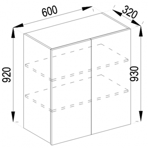 шафка верхня з двома дверима містить одне закрите відділення з полицями всередині |