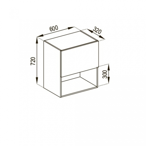 шафка верхня містить одне закрите відділення та відкриту нішу під мікрохвильову |